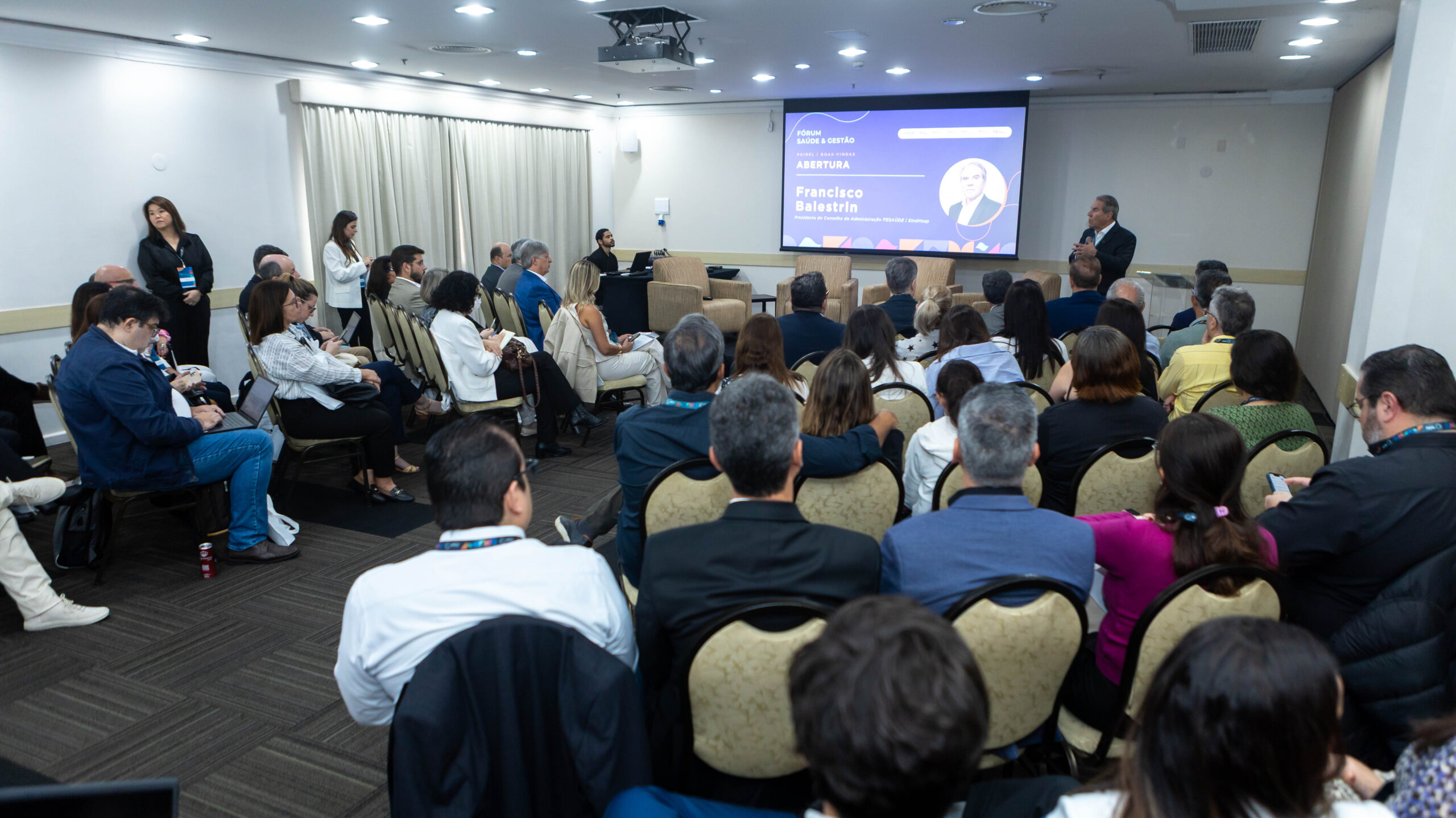 Com o tema “Gestão de alto desempenho em saúde – o poder dos indicadores”, o Fórum Saúde & Gestão foi dividido em dois painéis e reuniu lideranças do setor em Campinas para discutir a importância dos indicadores como ferramenta estratégica para a gestão eficiente da saúde pública e privada. Francisco Balestrin abriu o evento ressaltando que a FESAÚDE e o SindHosp operam como um “hub de saúde” e enfatizou: “Fazemos parte do SUS, que comporta o público e o privado”.