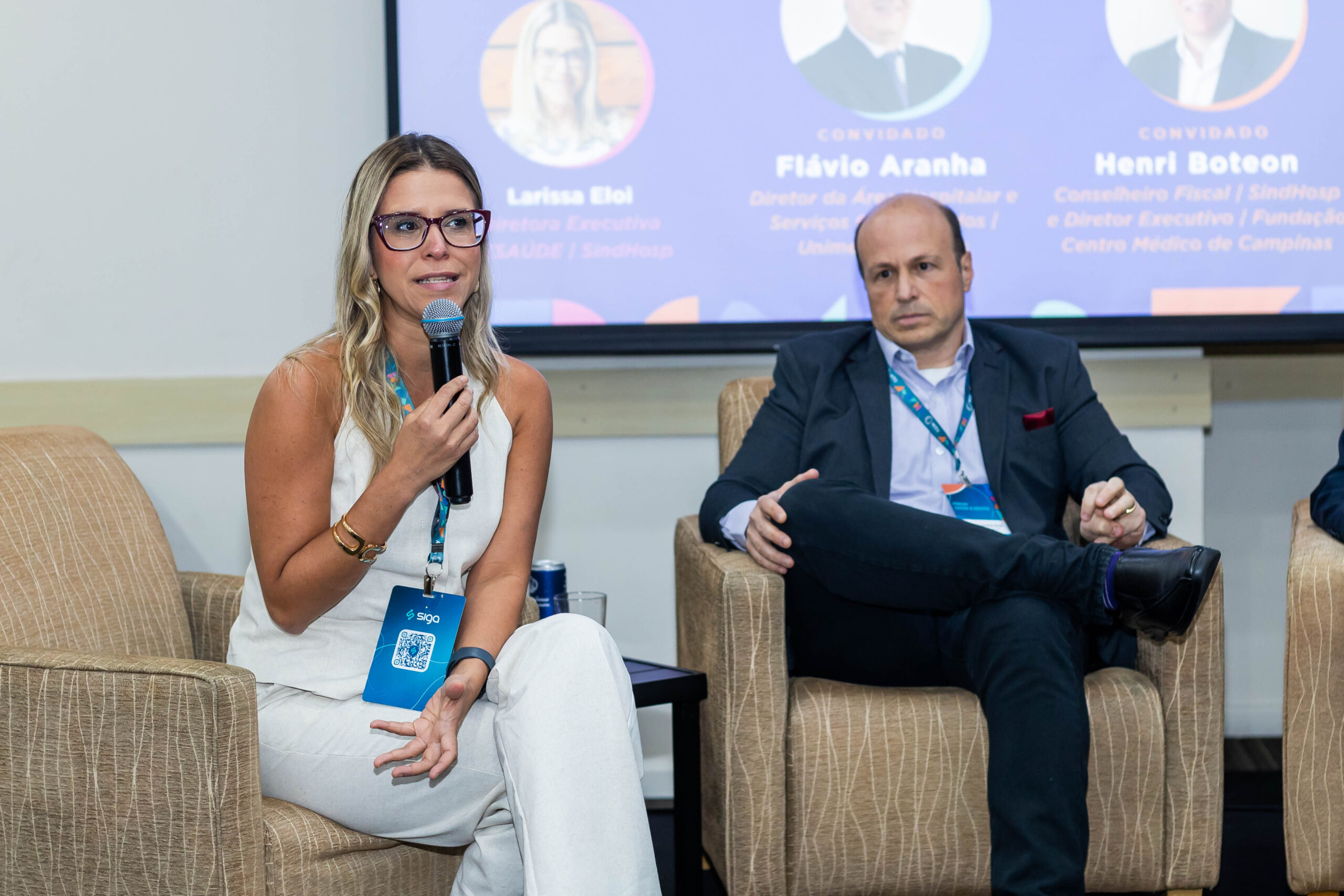 No painel de gestão “Transformando gestão em resultados – indicadores como motor de performance e sustentabilidade”, mediado por Larissa Eloi, da FESAÚDE/SindHosp, Flávio Leite Aranha Júnior, diretor da Unimed Campinas, reforçou a necessidade de indicadores para medir e transformar os serviços: “Sem indicadores, o gestor não transforma nem conhece o que faz”. Ele destacou a importância de dados integrados e governança para avançar em modelos de gestão dinâmicos.