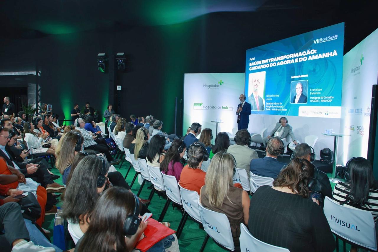 O VII Fórum Brasil Saúde, que aconteceu no dia 21 de maio, durante a Hospitalar, lotou a Arena Hub. Oficial da FESAÚDE, SindHosp e da Confederação Nacional de Saúde (CNSaúde),